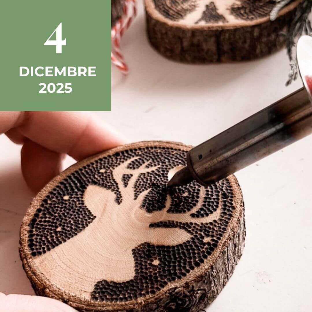 Parti da zero e prendi confidenza con il pirografo: uso corretto, scelta delle punte e dei supporti, trasferimento del disegno, scritte e motivi semplici su legno.